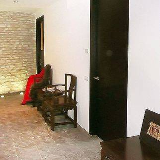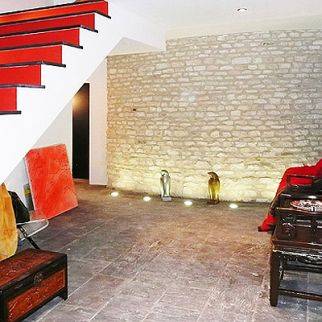 Der moderne Innenausbau, ebenso exklusiv wie apart, ist luxuriös gehalten, alle Fussböden sind in schwarzem Schiefer und mit Bodenheizung versehen.