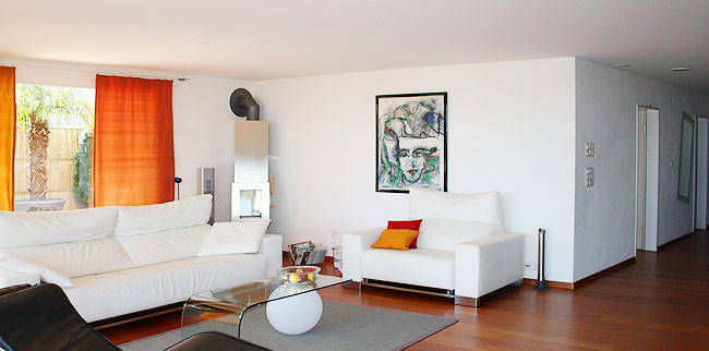 Die im Jahre 2003 erstellte, hochwertige Wohnung wurde ebenso exklusiv wie geschmackvoll ausgebaut, laufend instandgehalten (letzte Teil-Renovation 2015) und präsentiert sich voller Licht, Charme und Eleganz! Sie besteht aus einem grossen Wohn-/Essbereich mit Design-Cheminée, einem Wintergarten, einer Top-Küche von Poggenpohl (Induktionsherd, Profisteamer etc.), vier Schlafzimmern und zwei Badezimmern (ein Schlafzimmer mit Ankleide und Badezimmer en suite). Die Böden wurden mit einem eleganten Doussié-Parkett bzw. mit Schiefer belegt, die Badezimmer sind mit Apparaten von Philippe Starck ausgestattet. Exklusivität auf der ganzen Linie !