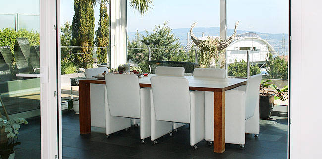 Die Raumgestaltung fasziniert durch Lichteffekte, welche über eine gekonnte Farbwahl einfliessen. Den herrlichen Blick auf den Zürichsee geniessen Sie aus dem Wohnzimmer, vom Wintergarten und aus dem Master-Bedroom.
