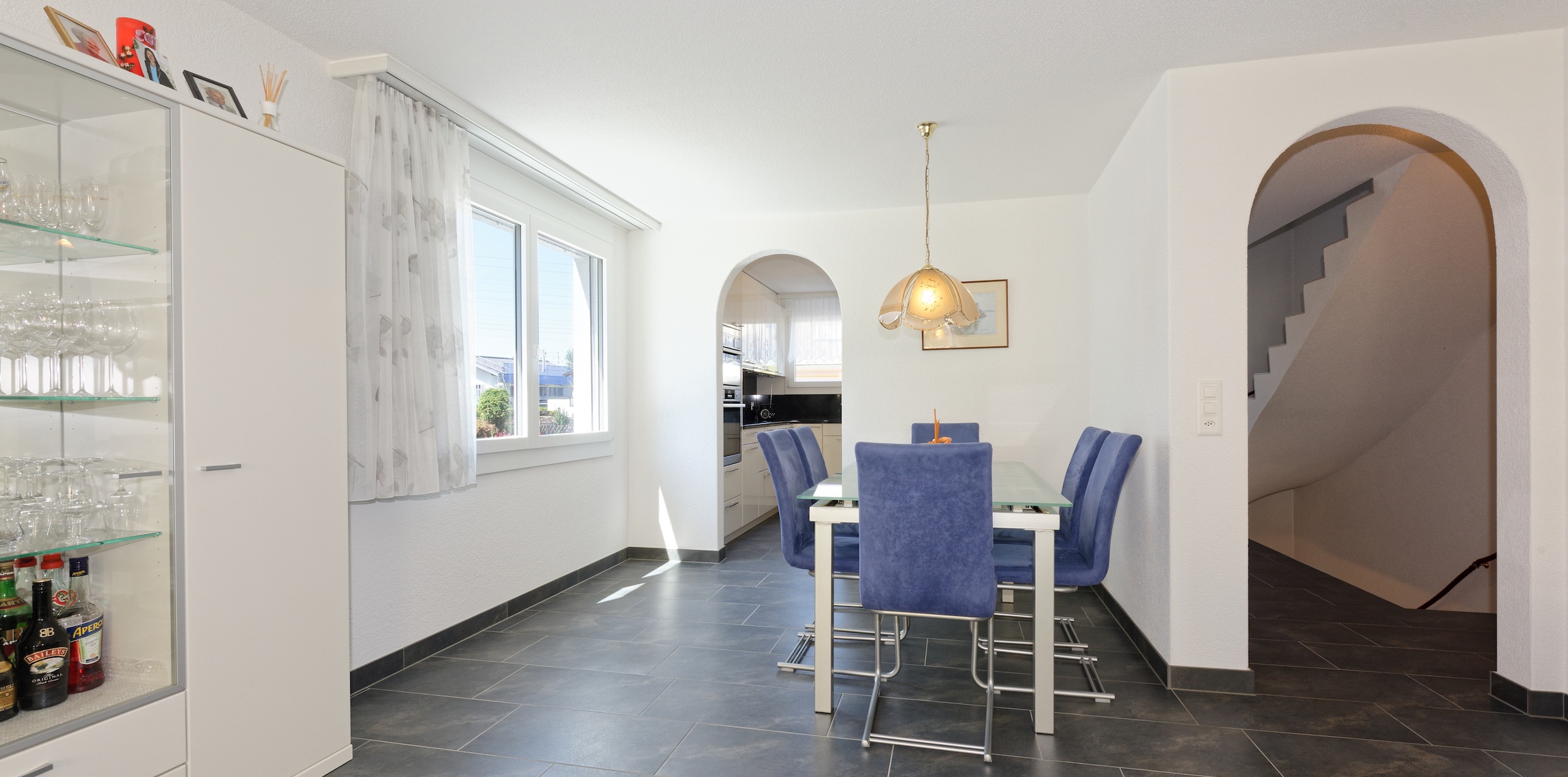 Das helle, sehr gepflegte Haus, welches sich auch bestens für Wohnen/Arbeiten eignet, verfügt über eine zweckmässige und grosszügige Raumgestaltung mit einem Wohn-/Esszimmer (Schwedenofen) mit Terrasse, einer Traumküche, fünf Schlafzimmern (zwei davon mit Ausgang auf den Balkon), zwei Badezimmern (Dusche/WC und Bad/WC) und einem Gäste-WC im Eingangsbereich. Die Wohnräume im Erdgeschoss sind mit Naturstein ausgelegt. Vom Erdgeschoss aus erreichen Sie einen hübschen Garten mit gedecktem Sitzplatz (Wintergarten) und einem aparten Grillhaus mit Smoker, wo sich herrliche Köstlichkeiten zaubern lassen. Im Erdgeschoss befinden sich neben dem Ausgang in den Garten und der Doppelgarage attraktive Nebenräumen wie Waschen/Technik, Bastelraum oder Fitness/Spielzimmer etc. Vor dem Haus parkieren Sie bequem weitere 2 – 3 Fahrzeuge.
